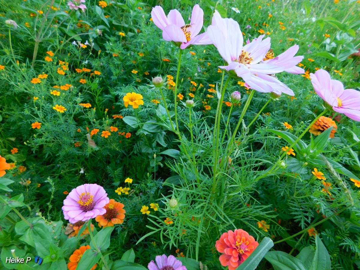 Sehr schön gestaltete Blumenrabatten mit verschiedenen Themen... Allesamt sind Paradiese für unzählige Insekten. Die Taubenschwänzchen sieht man hier in Scharen...