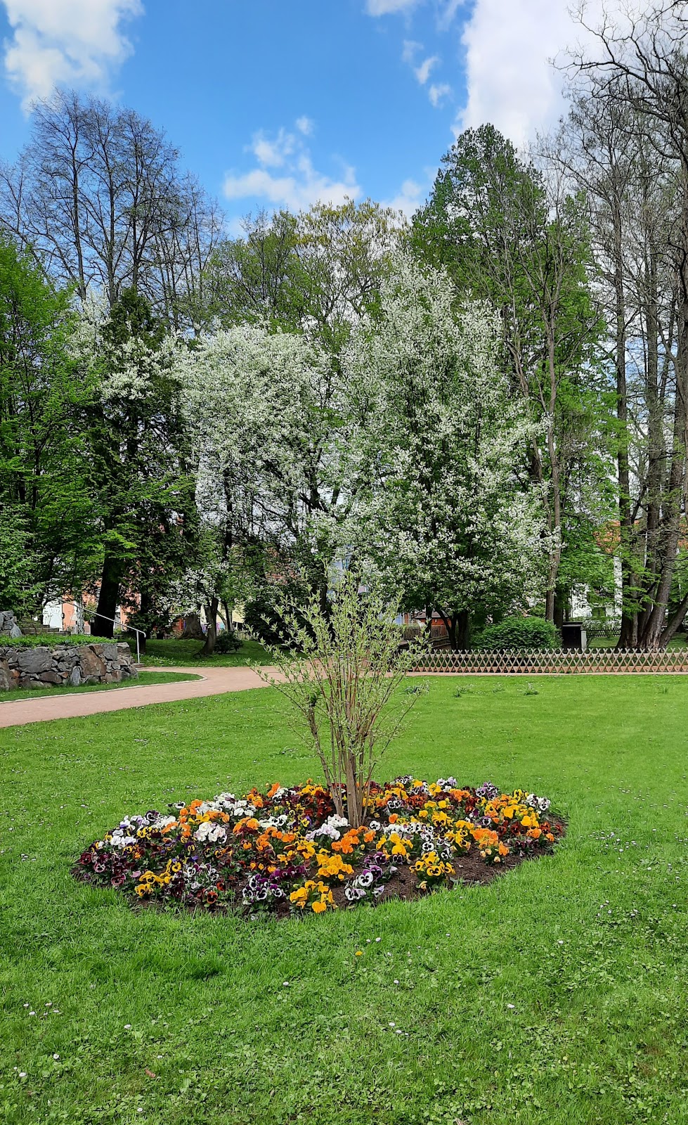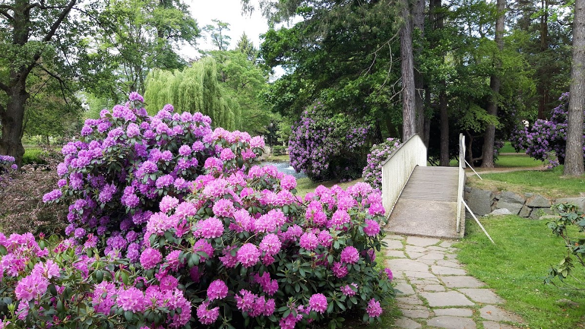 Für das kleine Städtchen ein sehr schöner Park mit tollen Bäumen und Sträuchern. Sehr schön die Wasserfontänen und die Brücken über den Teich...klein aber fein.