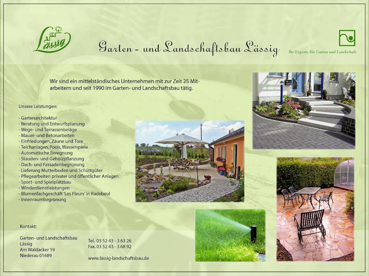 Die Fa. Lässig hat unsere Außenanlagen gestaltet. Vom ersten Moment der Planung bis zur endgültigen Fertigstellung konnte die Fa. Lässig überzeugen. Wir sind mit der Ausführung sehr zufrieden und können das Unternehmen jederzeit weiterempfehlen. Wir wurden sehr gut beraten. Selbst während der Ausführung der Leistung konnten Ideen eingebracht und Änderungen vorgenommen werden. ...... also Daumen hoch und nochmals besten Dank an alle Mitarbeiter der Fa. Lässig.