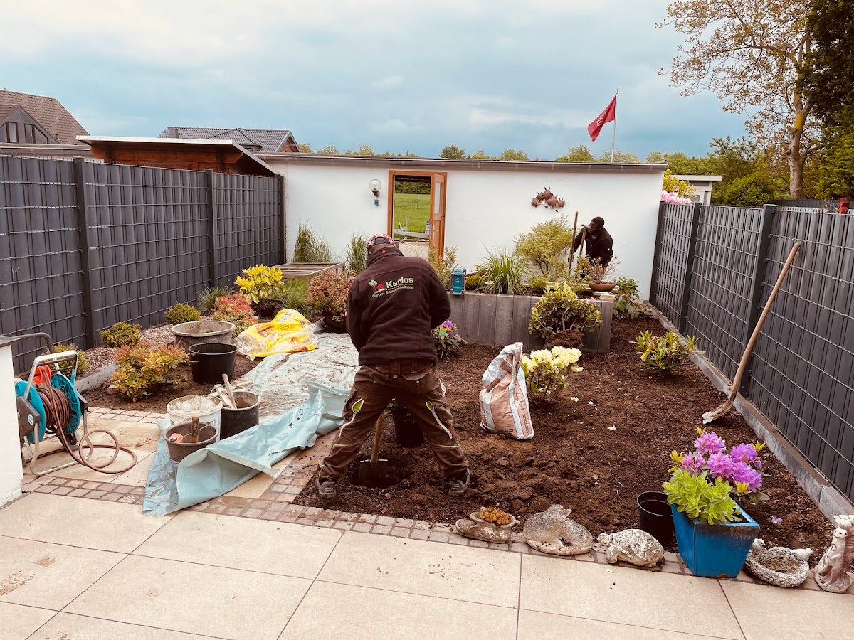 Die Fa.Karlos hat bei mir im Garten den Vorgarten und den Eingangsbereich neu gestaltet.Einige Sträucher die nicht mehr schön waren wurden entfernt. Auch ein paar Bäume hat das Team noch rechtzeitig vor der Vogelschutzzeit entfernt.Hat alles gut geklappt. Auch der Eingangsbereich mit der neuen Stufenanlage wurde ordentlich und sauber gemacht. Das Team war ordentlich,sauber,sehr freundlich und hat gute Arbeit geleistet. Mit dem Ergebnis bin ich sehr zufrieden und kann die Firma Karlos weiter empfehlen. Ein großes Lob an das ganze Team 👍😊