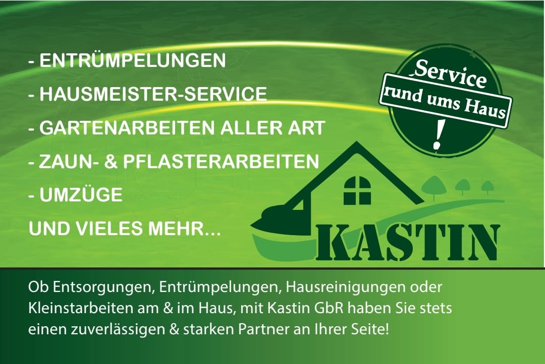 Bewertung: 5 Sterne Wir waren absolut begeistert von der Arbeit der Firma Service Rund ums Haus KASTIN Das Team hat unser Haus schnell, sauber und sehr preiswert geräumt. Die Jungs waren extrem freundlich, professionell und effizient. So eine tolle Firma findet man selten! Der Service war einfach mega gut, und ich bin sehr zufrieden. Ich kann diese Firma jedem weiterempfehlen, der Wert auf Zuverlässigkeit und Qualität legt. Nochmals vielen Dank für die hervorragende Arbeit! Maia