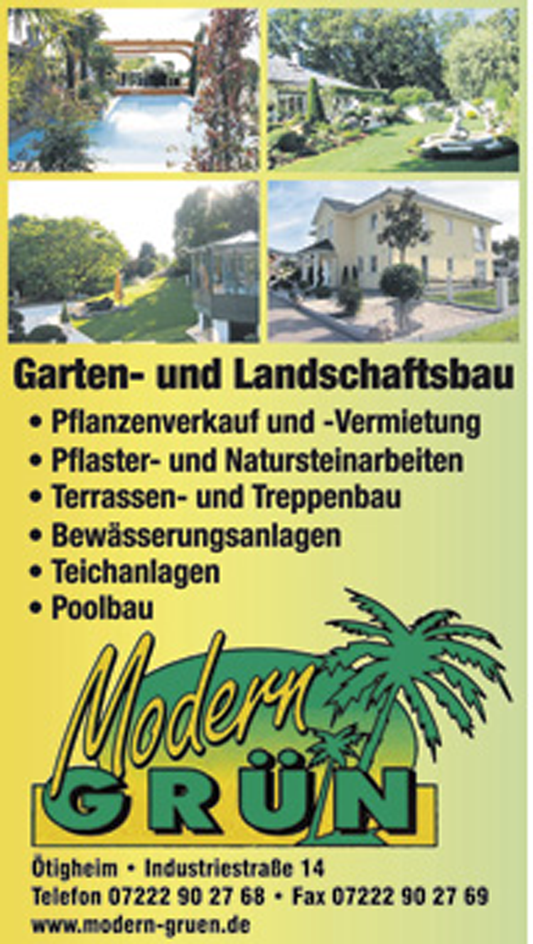 Firma Modern Grün hatte schon unsere Terrasse gebaut. Aufgrund der guten Erfahrungen, haben wir für die Umgestaltung unseres Gartens mit Teichbau, Pflasterarbeiten und Sichtschutz gerne wieder Firma Modern grün beauftragt. Alle Arbeiten wurden wunschgemäß ausgeführt und wir haben sehr viel Freude an unserem kleinen Paradies. Ein großes Lob auch an die tollen Mitarbeiter. Wir werden sicherlich gerne weiterhin mit der Firma Modern grün zusammenarbeiten.