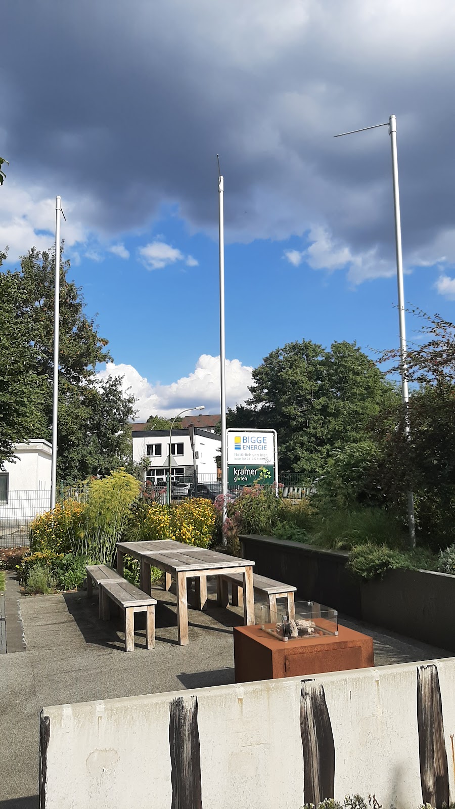 Drei neue Fahnenmaste in Einfahrt Bigge-Energie / Garten Kramer aufgebaut. Vielen Dank für Ihren Auftrag.