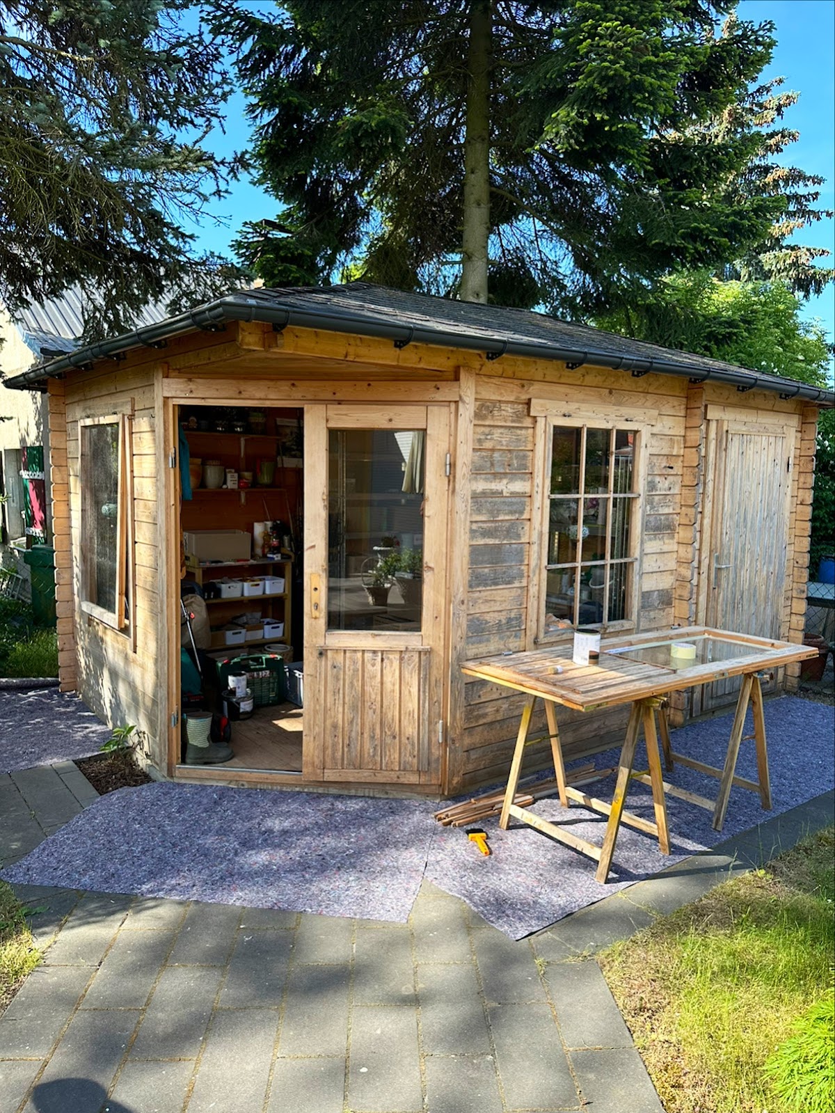 Unser Gartenhaus sollte farbig neu gestaltet werden. Ein Anruf bei Herrn Lange, kurzfristiger Ortstermin, kompetente Beratung und abgestimmter Anfangstermin zur Realisierung. Pünktlich zum vereinbarten Temin begannen die Arbeiten(schleifen, ölen, Grundierung, Farbanstrich der Wände und abschließend der weisse Anstrich der Fenster und Rahmen. Mit Sachverstand und Sorgfalt wurden die Arbeiten in sehr guter Qualität ausgeführt. Nun sieht das Schätzchen chic aus. Herzlichen Dank an Herrn Lange und seinen Mitarbeiter Herrn Scheel.