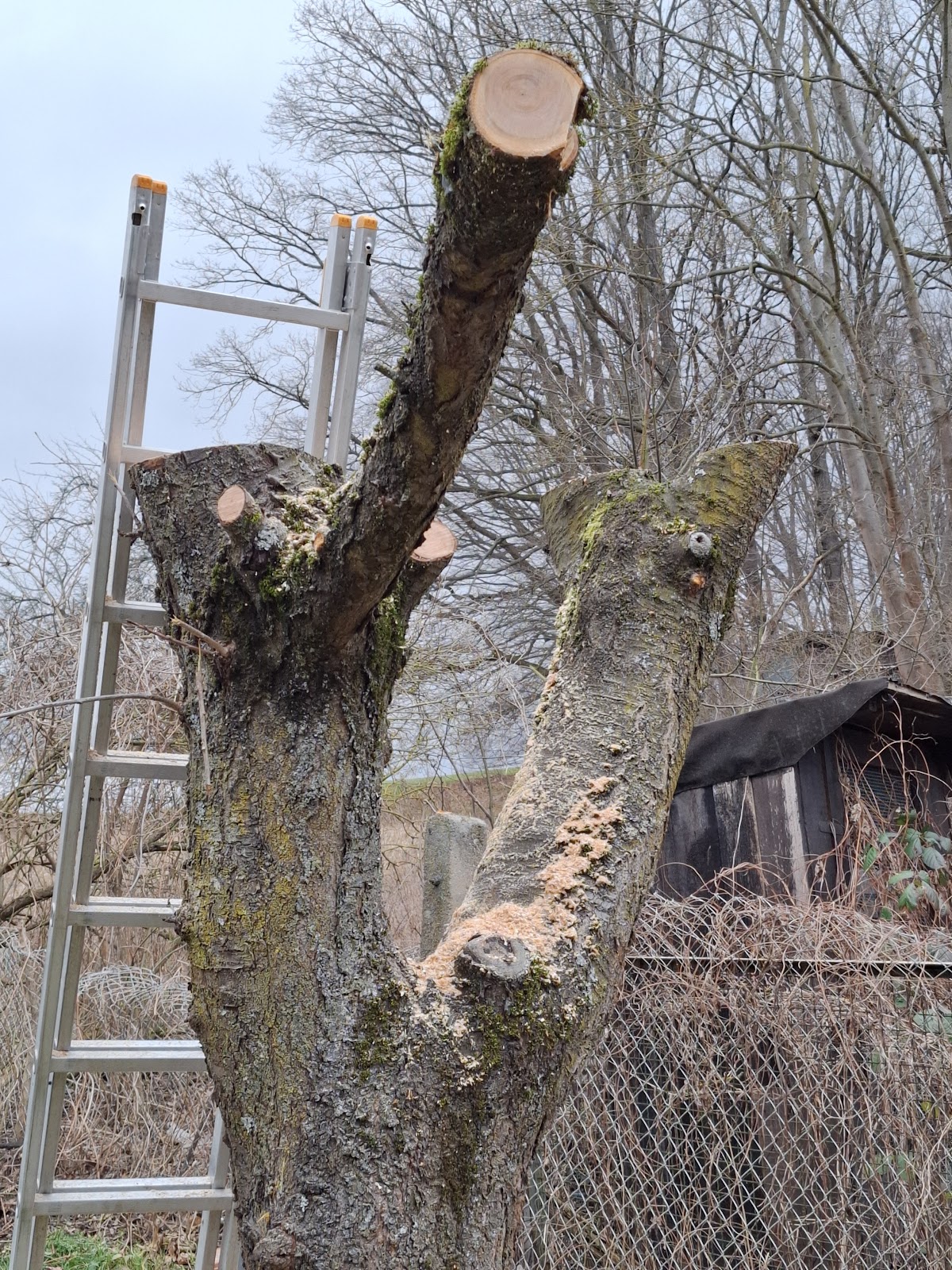 Ordentlich und schneller Schnitt unseres Baums, Weiternutzung für ein Baumhaus mit Tipps, können wir empfehlen!