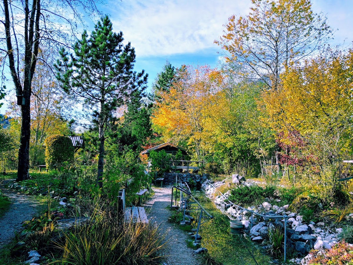 Ganz toller Garten direkt an der Steinacher Achen. Er ist sehr idyllisch sowie sehr romantisch und es gibt auch durchaus Bänke auf denen man verweilen und der Steinacher Achen lauschen kann. Es gibt teils öffentliche WC's ist aber leider nur sehr bedingt für Rollstühle und Kinderwägen geeignet. Trotzdem ein ganz toller Garten. 👍