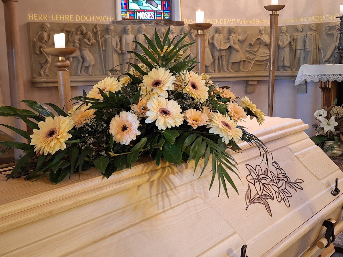 Die Firma Trautzsch hat den Blumenschmuck für die Beerdigung unserer Mutter gestaltet. Da wir alle von auswärts kamen, auch unsere privaten Blumengrüße. Alles war wunderbar.
