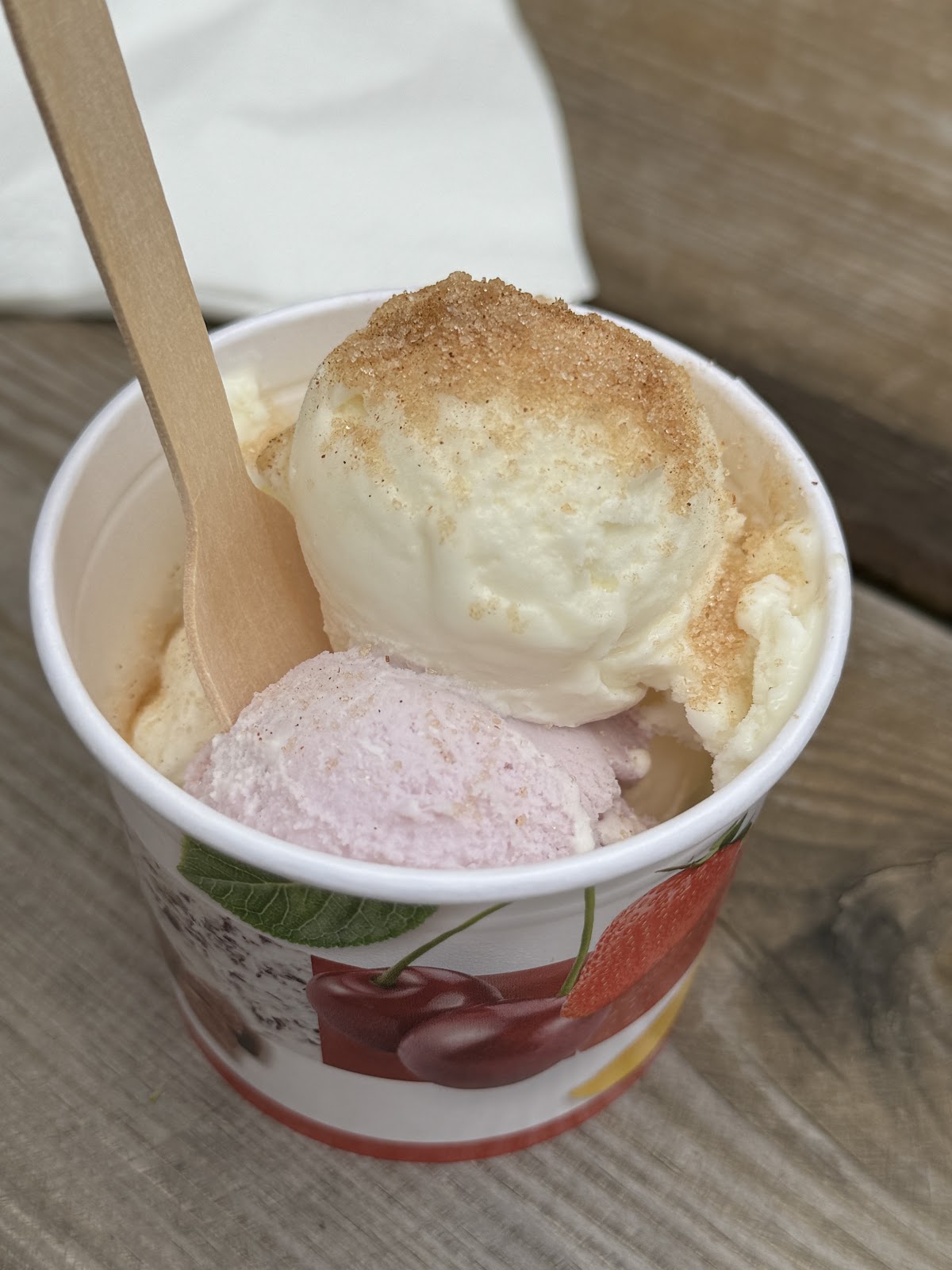 Uns wurde gesagt das Beste Eis gibt es hier es wurde übertrofen. Meine müschung bei 30 Grad Zitrone und Minze. Einfach Top.