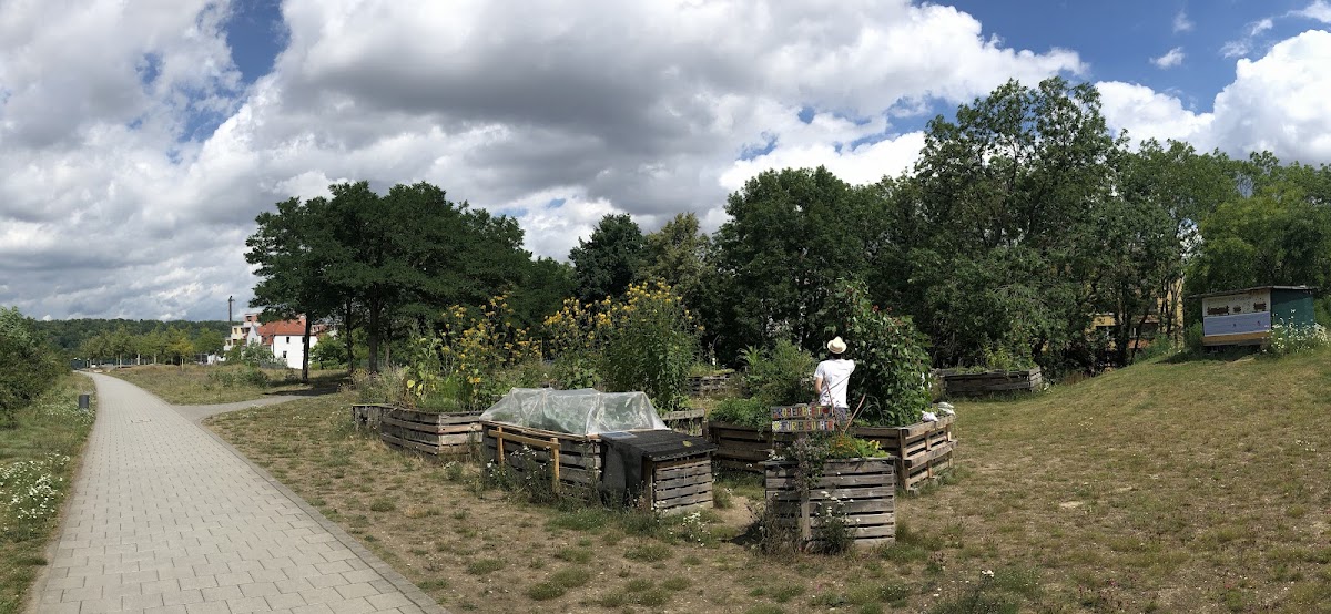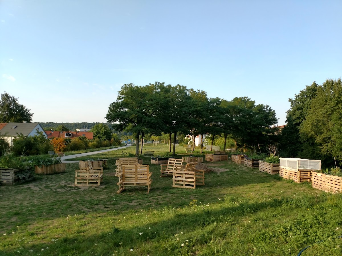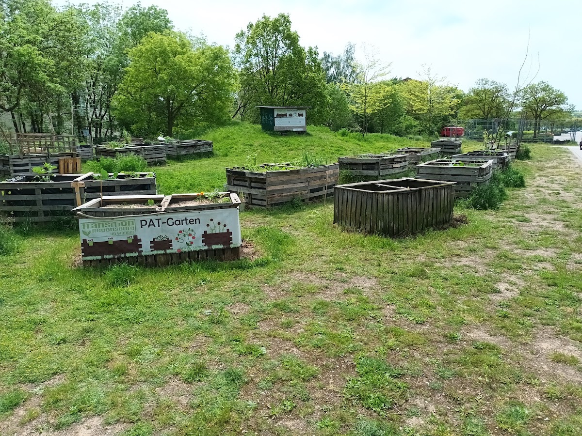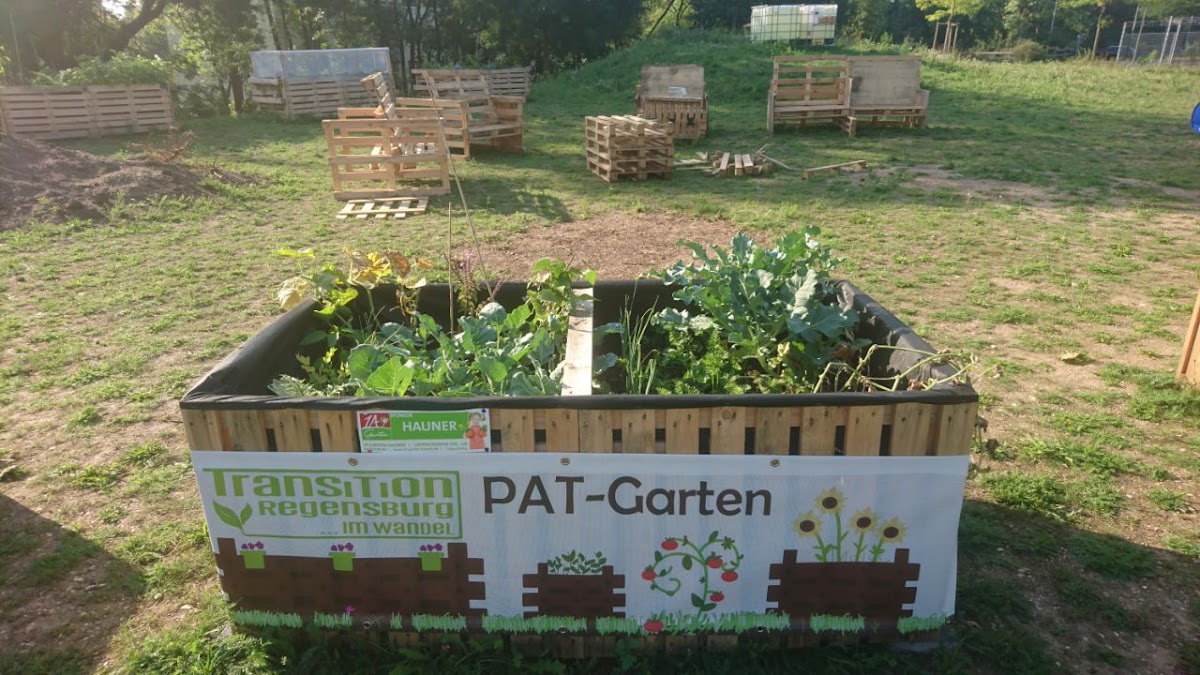 Der Pat Garten ist ein mit Transition Regensburg e. V. organisierter Hochbeetgarten aus Paletten. Sehr ordentlich gebaut und gut gepflegt.
