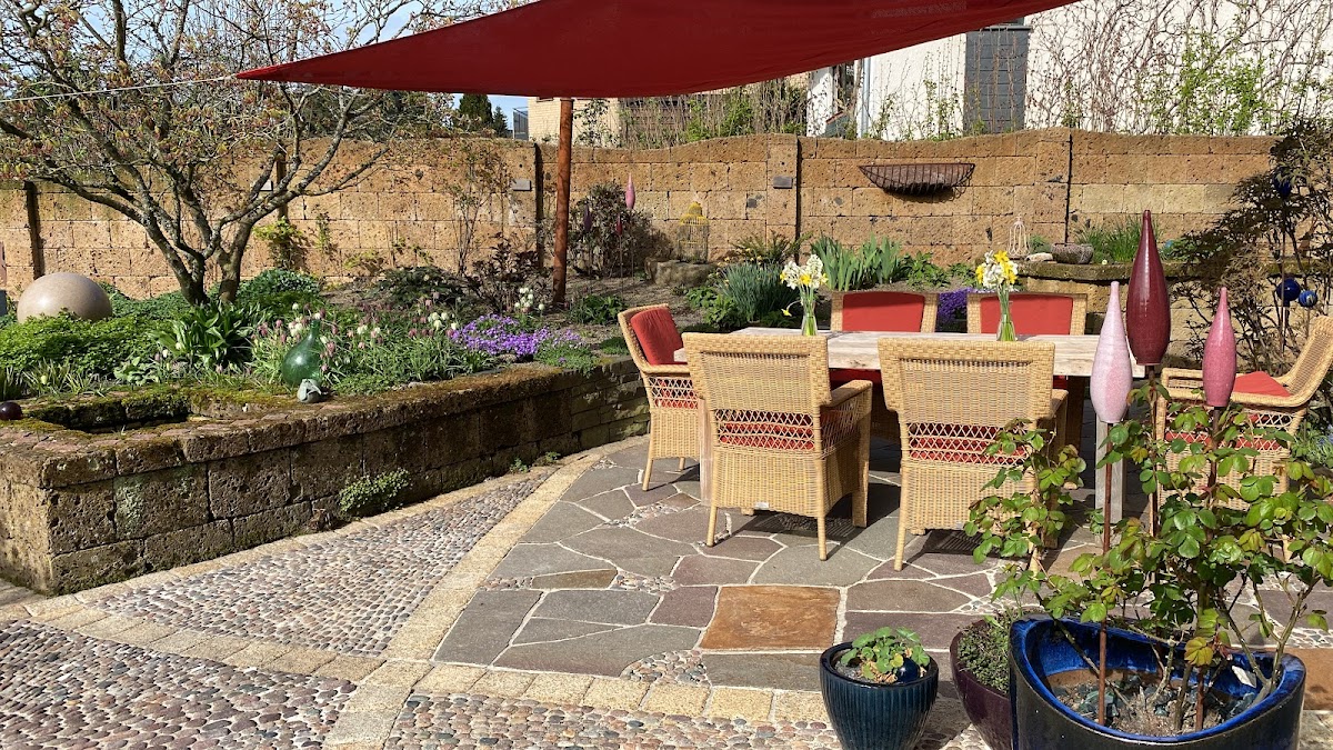 Als wir 2014 auf der Landesgartenschau in Zülpich (unzufrieden mit den ersten Planungsschritten eines anderen Unternehmens) einen Mustergarten der Fa. Schmitz Garten- und Landschaftsbau betraten, war uns gleich klar, dass wir uns die Umgestaltung unseres Gartens in diesem Stil mit all den verspielten Elementen und unterschiedlichen Materialien so vorgestellt hatten. Um den Jahreswechsel 2015 /2016 wurde diese nach gründlicher Planung und zahlreichen inspirierenden Absprachen mit Herrn Schmitz vorgenommen. Von Anfang an begeisterte uns der Ideenreichtum und die Art, wie Herr Schmitz und sein Team arbeiteten. Man spürte in der gesamten Zeit die gute Stimmung im Team sowie das Können und die Liebe aller Beteiligten zum Beruf. Bis heute ist eine freundschaftliche Verbundenheit entstanden, und wir freuen uns gemeinsam an diesem Werk, schöner, als wir es uns je erträumt hatten (selbst 5 Sterne reichen kaum, unsere Begeisterung widerzuspiegeln). Immer wieder gibt es etwas Neues zu bewundern, das wächst und blüht; auch erhält man von den verschiedenen Sitzmauern und Bereichen des Gartens aus ständig andere faszinierende Eindrücke vom Garten. Wir werden es nicht satt, einfach nur zu schauen und zu genießen; auch unsere Gäste sowie zahlreiche Vögel und Insektenarten fühlen sich äußerst wohl. Sogar das Arbeiten in der insgesamt pflegeleichten Anlage macht Spaß, weil uns selbst daran gelegen ist, diese Schönheit zu erhalten. Ein wirklicher Garten für Augen und Seele!