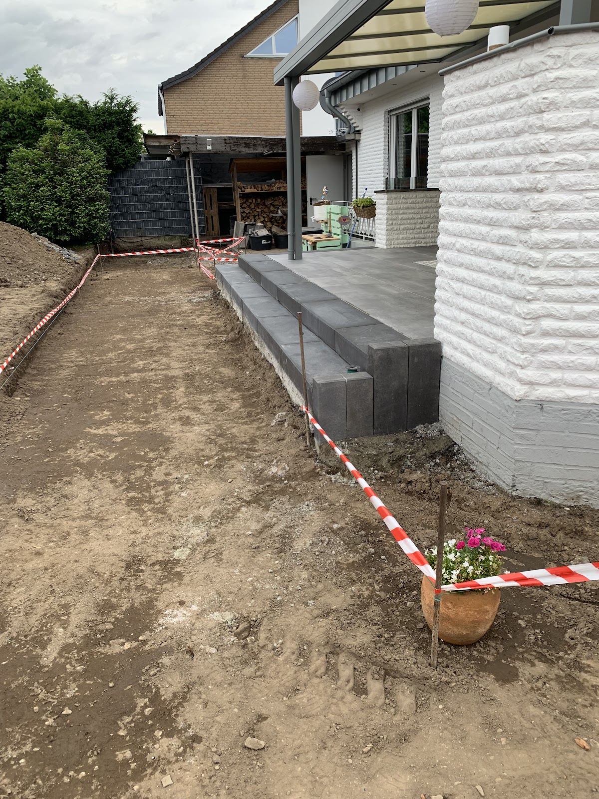 Wir haben unsere Terrassen-Stufen (3-stufig über Eck) von Herrn Müller setzen lassen. Herr Müller war stets motiviert, unsere Wünsche, die durch uns mehrmals geändert wurden, in die Tat umzusetzen. Er stand uns stets zur Seite und wurde durch unsere vielen Änderungen nie unmotiviert und hatte immer gute Ratschläge für uns. Wir sind mit der Ausführung mehr als zufrieden und bedanken uns, dass er und seine Mitarbeiter die Stufen genau so gesetzt haben, wie wir uns es vorgestellt hatten.