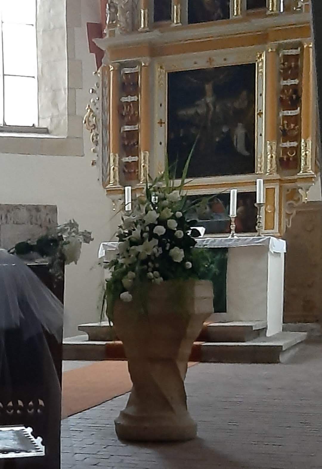 Traumhafte Umsetzung unserer Wünsche für die kirchliche Hochzeit am 02.09.2023. Brautstrauß, Gesteck Kirche und für das Brautauto. Großes Lob und herzliches Dankeschön Brigitte Haag