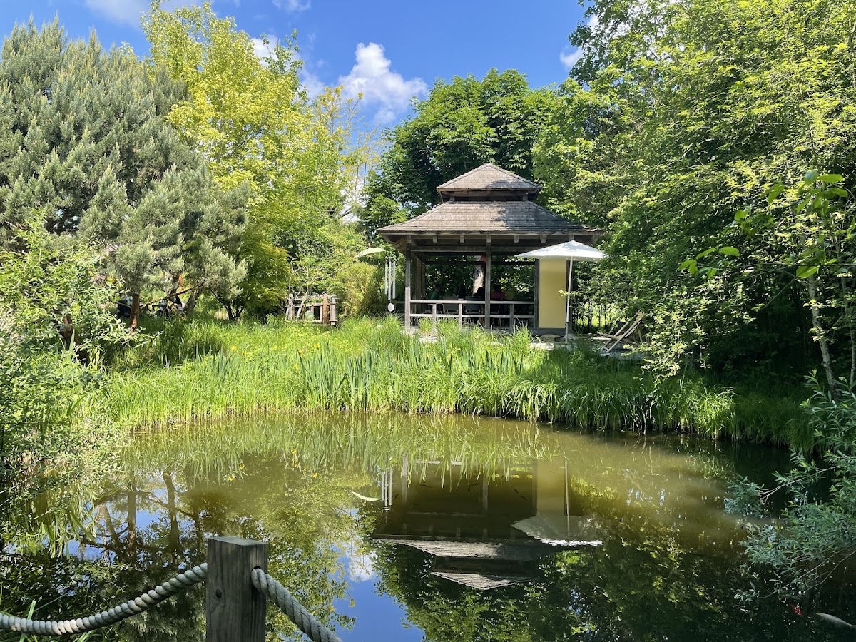 Eine wunderschöne Idee um zu verweilen einen Kaffee zu trinken oder einen Kuchen zu genießen. Ein Garten zum Verweilen und runter zukommen Sitzplätze in die weit verstreut im lotusgarten angenehmes Klima.