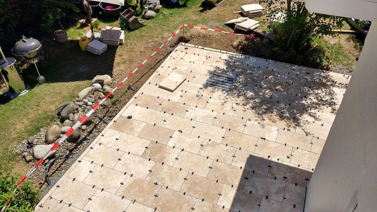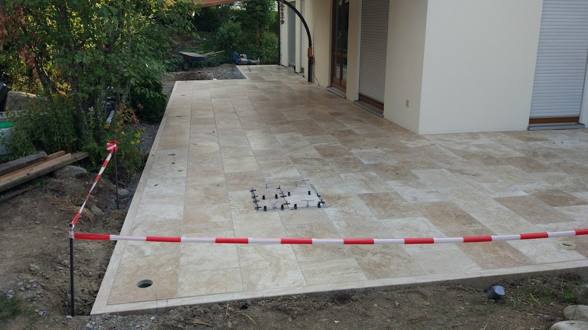 Marc Flesch und sein Team haben im Juni 2017 für uns eine echte Traumterrasse gezaubert sowie eine tolle Treppe am Haus in Naturstein angelegt. Dabei kann ich dem gesamten Team zu allen wichtigen Punkten nur die Höchstnote geben: - Durchsprache des Bauvorhabens, Erreichbarkeit - Vorschläge vor und während der Bauphase zum Material und zur Ausführung - Kenntnisse und Erfahrungen die zur Durchführung nötig sind - Berücksichtigung eigener Wünsche (wir hatten z.B. sehr viele Kabel für die Bodenbeleuchtung vorgesehen) - Durchführung der Arbeiten - Qualität der Arbeit - Preis / Leistung - Abrechnung sind vorbildlich! Das Ergebnis ist einfach nur wunderschön und erfreut uns jeden Tag. Die Aufnahmen zeigen den Baufortschritt und die fertige Terrassenfläche im Detail. Verbaut wurde Travertin beige. Daher hier meine klare Empfehlung.