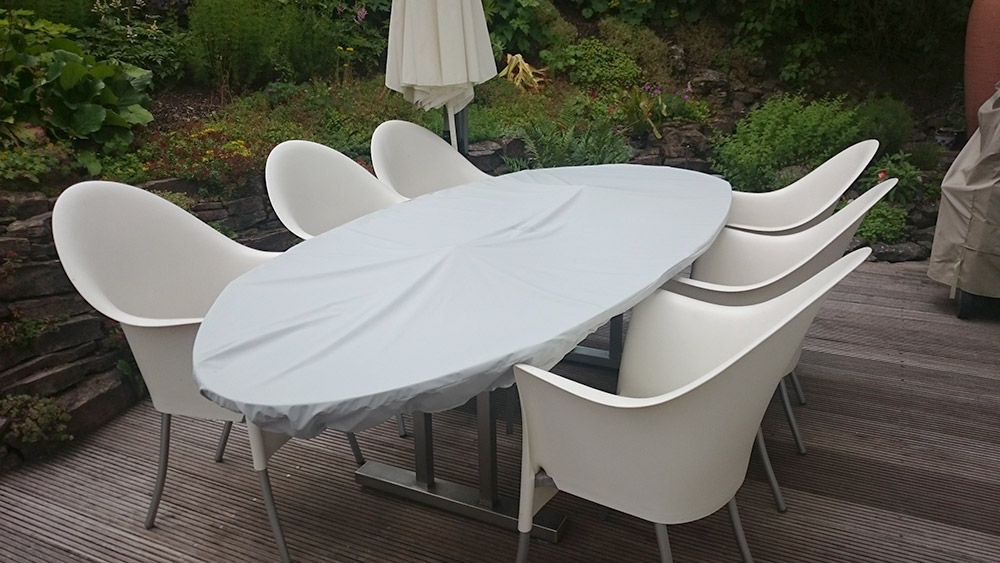 Die Wettertüte mag für billige Gartenmöbel funktionieren, unsere teuren Hansen Holzmöbel hatten trotz der richtigen Anwendung der Abdeckung Wasserflecken und nach dem ersten Winter Schimmelflecken, also Totalschaden. Der Hersteller behauptet wir hätten die Abdeckung falsch benutzt und hat einzig angeboten, dass wir sie zurückschicken könnten, sonst nichts. Wenn ein Produkt offensichtlich fehlerhaft ist, muss man dafür auch haften. Under Fazit: schlechte Qualität, kein Kundenservice, also besser andere Produkte kaufen.