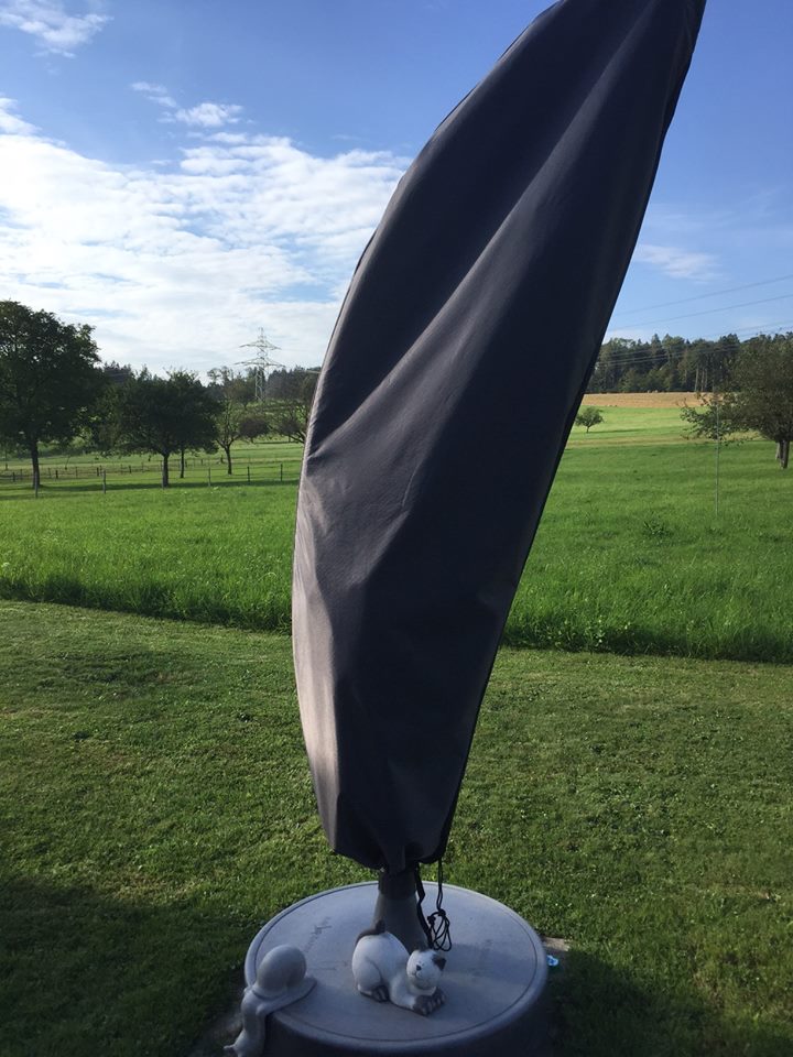 Unsere Wettertüte ist pünktlichst bei uns eingetroffen - und wir sind super zufrieden damit: Sie passt absolut perfekt, sieht optisch sowie farblich sehr schön aus und hat sich mittlerweile nach zwei Tagen Dauerregen bestens bewährt. Wir sind sehr froh, daß wir uns für diese Firma und die maßangefertigte Wettertüte entschieden haben! Speziell auch der Service war von Anfang an herausragend und sehr professionell! Sehr schnelle Rückantworten, präzise Auskünfte und Top-Beratung bis hin zum überzeugenden Produkt selbst: Besser geht es nicht!