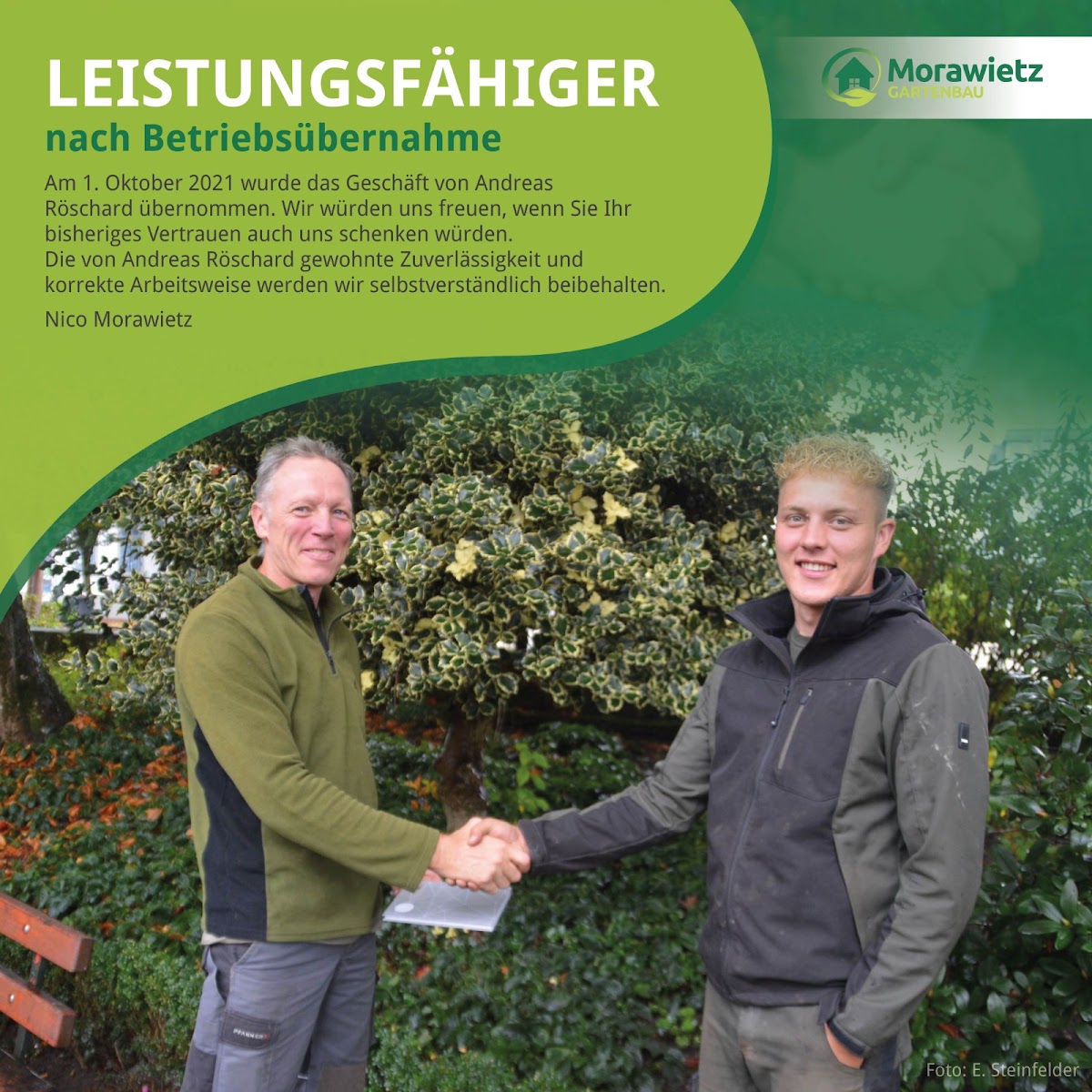 Gartenbau Morawietz ist ein professionelles, zuverlässiges und freundliches Team. Wir sind sehr froh, dass Herr Morawietz mit seinen Mitarbeitern unsere Hof neu gestaltet hat. Trotz Herausforderungen wurde alles durchdacht und ordentlich umgesetzt. Alle Änderungen wurde vorher persönlich besprochen. Und über die gesamte Zeit war Herr Morawitz immer im Austausch und hat sich die benötigte Zeit genommen. Danke vielmals. Wir können das Unternehmen nur empfehlen.