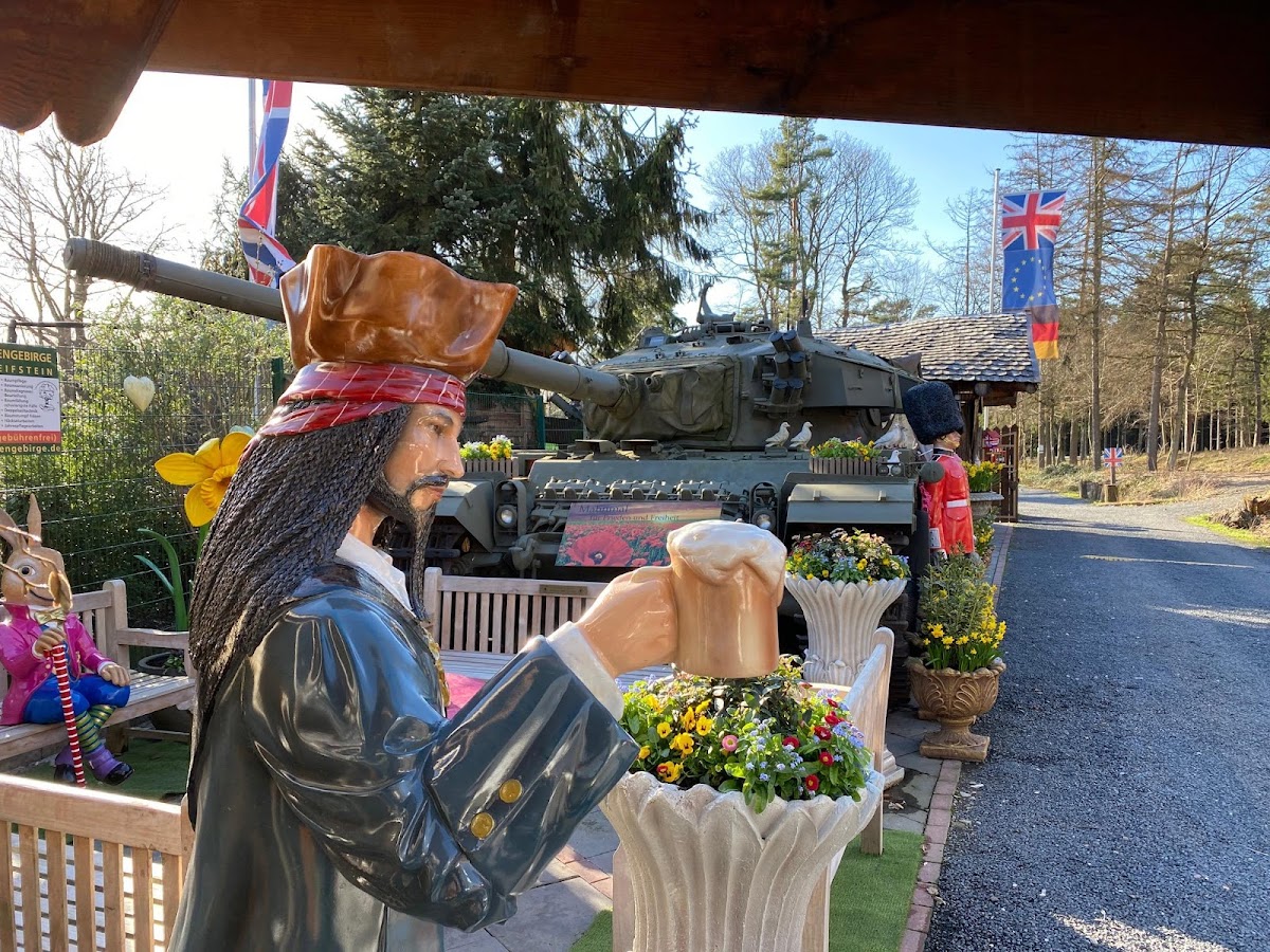 Supergenial , ein kleines Stück England, sympathisch , ich hoffe es kann genau so bestehen bleiben, mit Kaninchen, ganz vielen Vögeln, Reliant Robin, Land Rover, Bus ,Mr Bean und PANZER