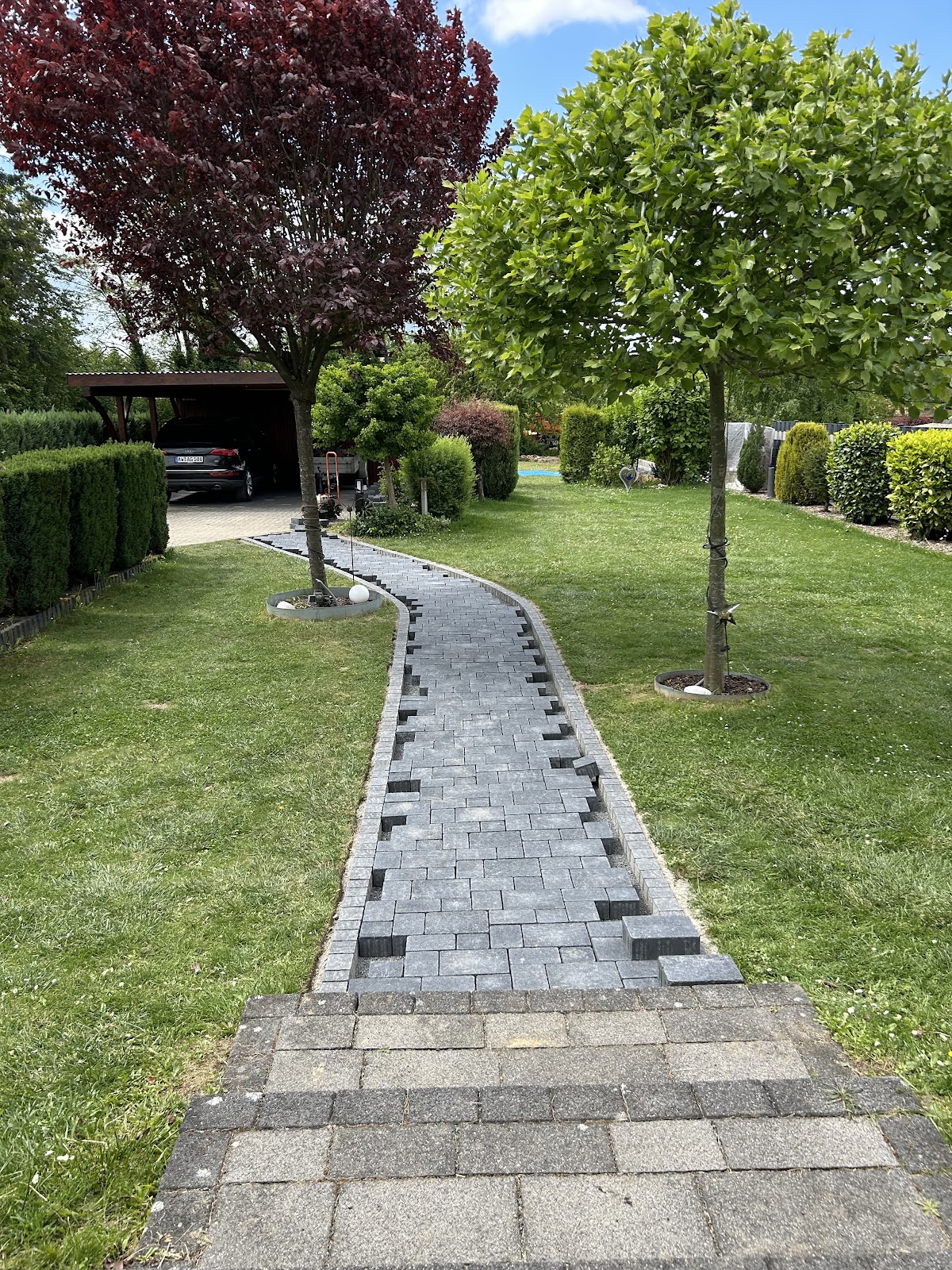 Bilder sagen mehr als Worte. Für alle noch nicht entschlossenen Interessenten die vielleicht noch Zweifel haben, füge ich Vorher-Nachher-Fotos von unserem Projekt anbei. Wer auf der Suche nach einem Ga-La-Bauer ist, hat die Qual der Wahl. Wir haben uns für die Firma Söhnle Gartenbau entschieden und keinesfalls bereut! Die ausschlaggebenden Punkte waren für uns: 1. Zuverlässigkeit Die Termine wurden eingehalten (Besichtigung, Angebot, Ausführung). An der Stelle muss ich dazu sagen, dass die Fertigstellung sich wetterbedingt ein paar Tage nach Hinten verschoben hat. Ich hatte befürchtet, dass der Garten nicht fertig wird und Herr Söhnle zur nächsten Baustelle weiterzieht, weil andere Kunden warten, ist ja heutzutage gang und gäbe. Meine Sorgen waren unbegründet. Es wurden andere Termine um wenige Tage verschoben damit unser Vorhaben abgeschlossen werden kann. 2. Erreichbarkeit Telefonisch oder über WhatsApp immer zu erreichen. Man muss nicht hinterher rennen und kann sich auf einen Rückruf dann auch verlassen. 3. Flexibilität Unsere Wünsche wurden immer berücksichtigt selbst wenn man sehr kurzfristig Planänderungen vornehmen wollte. An einer Stelle gab es ein Kommunikationsfehler. Dieser wurde ohne Diskussionen und Widerworte einfach korrigiert, Hauptsache der Kunde ist glücklich. Das ist ein Service den ich sehr schätze. Ich kann mit Sicherheit sagen, dass ich bei unserem nächsten Projekt (Vorgarten) nicht erneut auf die Suche gehen muss und gerne wieder Herrn Söhnle beauftrage.