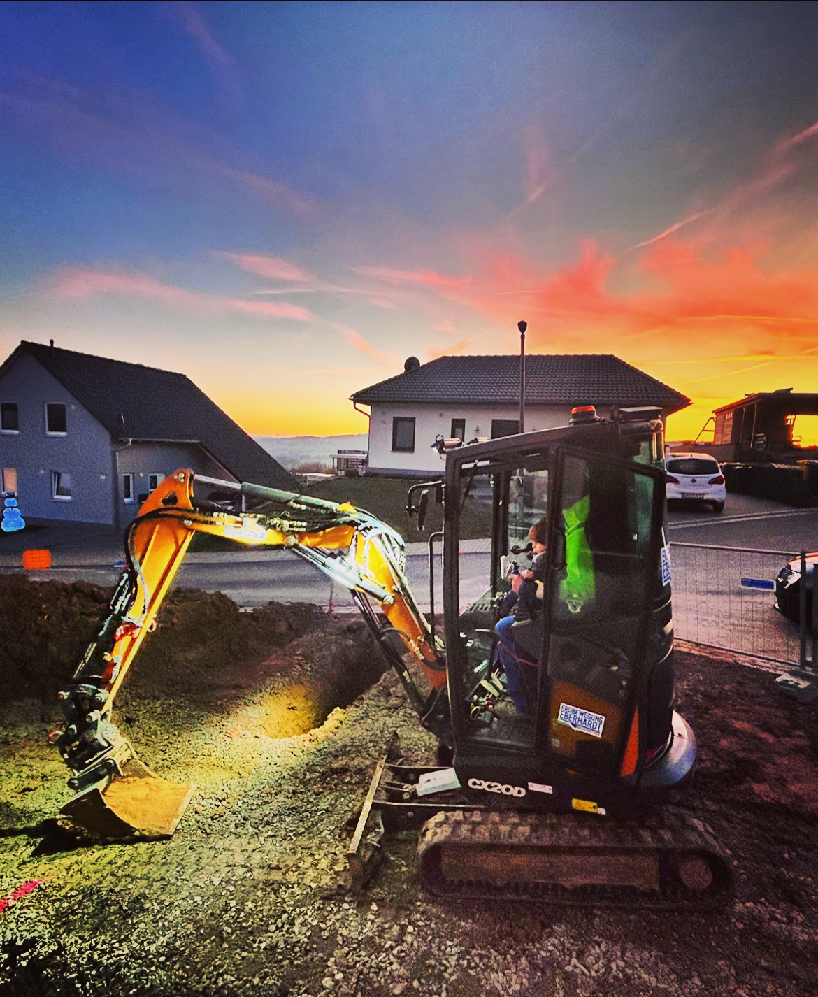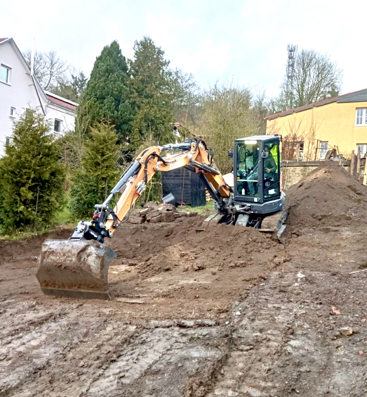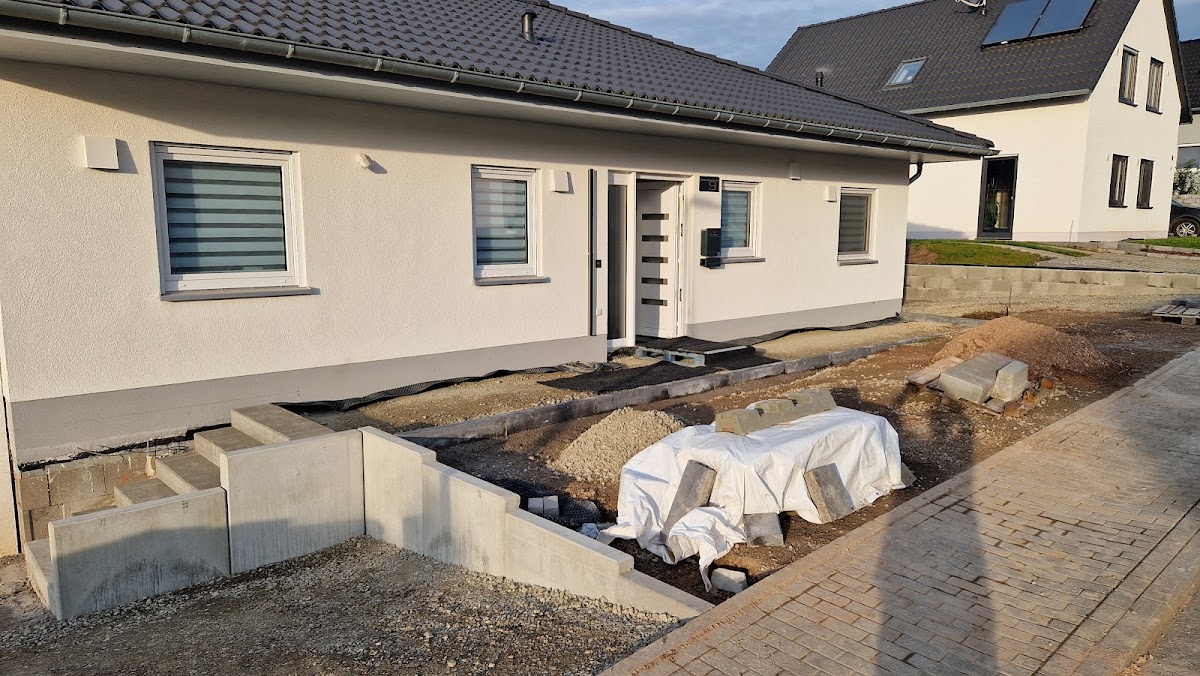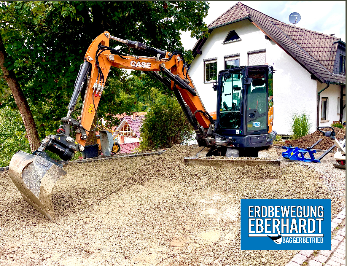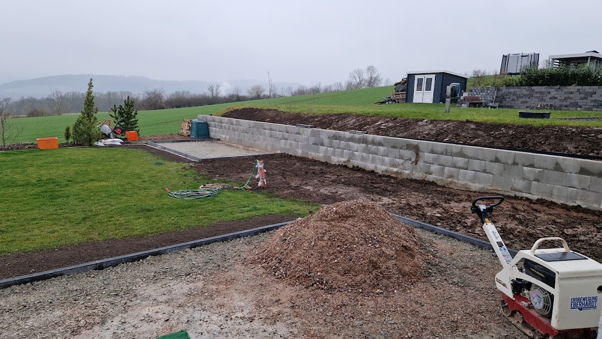 Wir haben 2019 zum ersten Mal mit Erdbewegung Eberhardt zusammen gearbeitet. Auf unserem Grundstück musste eine alte Gastwirtschaft abgerissen werden. Aufgrund der Grenzbebauung gab es hier einige knifflige Situationen, die aber sehr gut gelöst wurden. Es kam zu keinem Schaden am Nachbarhaus. Der Bauschutt wurde während dem Abriss bereits vorsortiert, um unsere Entsorgungskosten zu reduzieren. Im weiteren Verlauf unseres Neubaus holten wir uns immer wieder die Unterstützung von Herrn Eberhardt. Alle Schotterflächen um und neben dem Haus wurden von ihm aufgebracht. Alle Leitungen und Kabel wurden dabei ordnungsgemäß gekennzeichnet und eingebracht. Alle Materialien und Baumaschinen wurden mitgebracht, man musste sich um nichts weiter kümmern. Das größte Projekt haben wir 2021 mit Herrn Eberhardt umgesetzt. Unser 3000qm großer Garten musste modelliert werden. 30 Jahre Wildwuchs wurden von uns im Vorfeld abgetragen und Herr Eberhardt entfernte innerhalb von 5 Tagen alle Baumwurzeln und modellierte das gesamte Grundstück. Es erfolgte täglich eine Absprache zum Fortschritt und zum weiteren Vorgehen. Probleme wurden umgehend angesprochen und Optionen für dessen Lösung aufgezeigt. Im letzten Jahr haben wir die Dachentwässerung mit Herrn Eberhardt umgesetzt. Der ursprüngliche Auftrag war der Anschluss an die Abwasserleitung. Bei der Ortsbegehung fiel jedoch direkt auf, dass das Gefälle zu steil ist und Herr Eberhardt riet uns dringend von dieser Umsetzung ab. Er hatte jedoch direkt eine Alternative parat, die das Problem löste ohne weitere Mehrkosten für uns. Ich kann die Dienstleistungen von Herrn Eberhardt nur empfehlen. Alle Arbeiten wurden zügig erledigt. Mehraufwände wurden immer angekündigt und besprochen. Er hatte immer einen alternativen Weg parat und hatte immer das Portemonnaie des Auftraggebers im Blick. Preis-Leistung stimmt hier in jedem Fall.