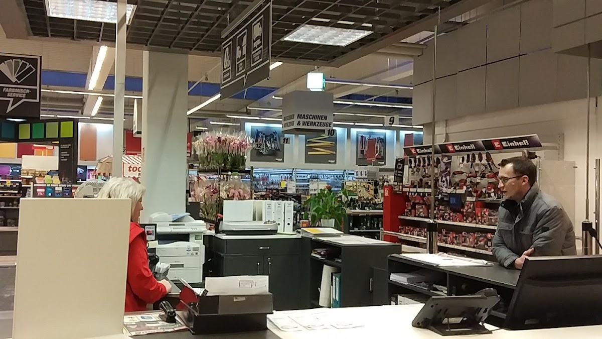 Schöner, ordentlicher und sauberer Baumarkt. Eine große Auswahl an Allem. Die Mitarbeiter sind freundlich und hilfsbereit, die Mitarbeiter an der Kasse bleiben auch immer freundlich und empfangen einen am Eingang schon nett. Hier ist eigentlich alles zu finden, ob Elektro, Sanitär, Holz, Garten, Deko. Hier findet jeder was er sucht.