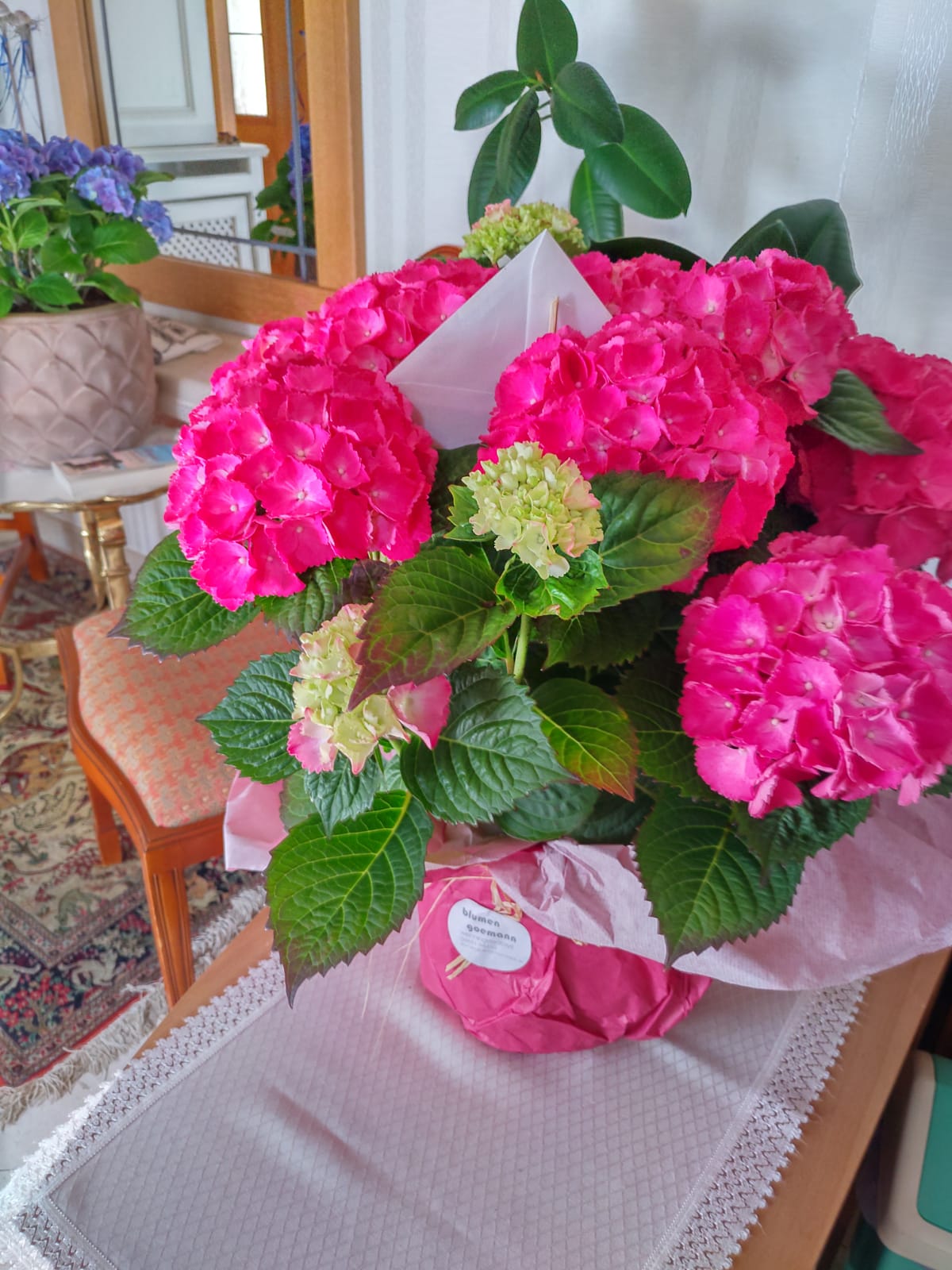 Heute geliefert 👍 Vielen lieben Dank für die tolle Beratung. Blumen sind wunderschön und kamen auch sehr gut beim Geburtstagskind an Auch die Verpackung des Topfs in der gleichen Farbe wie die Hortensie ist wunderschön. Lieferung war pünktlich Kann Sie nur empfehlen 👍 Lieben Dank