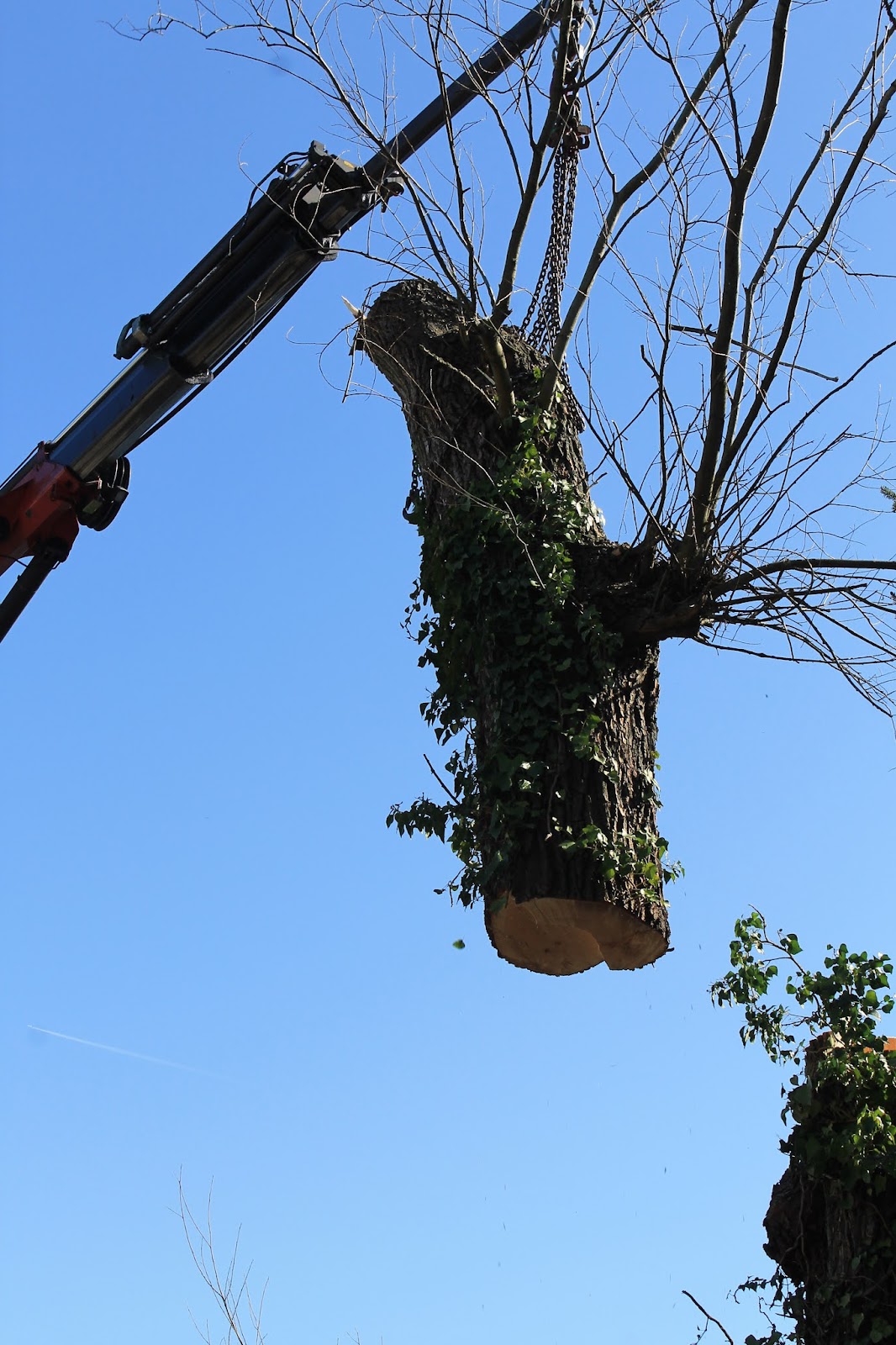 Nach der örtlichen Fäll-Genehmigung lief alles schneller ab als gedacht: Eine riesige Kiefer ziemlich nah am Haus wurde profimäßig in nur 3 Stunden mit großem Laster und schwerem Gerät gefällt und besenrein entsorgt zu einem fairen Preis (Dachrinne ohne Aufforderung auch noch gereinigt!). Kein Zaun, kein Rosenbogen, kein Blatt, keine Dachpfanne usw. ist beschädigt worden … Alle Nachbarn und Vorbeifahrende waren über die Profis erstaunt: Sowas hatten sie noch nicht gesehen! Phantastisch! - Dank an Thomas Gräfer und sein Team!