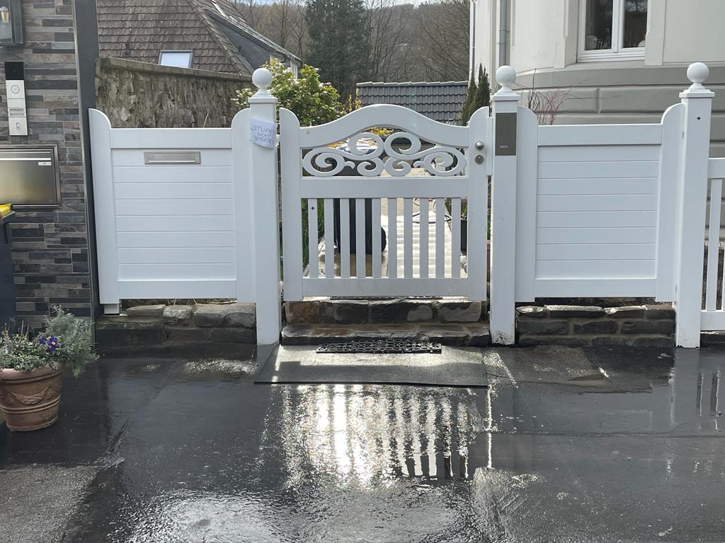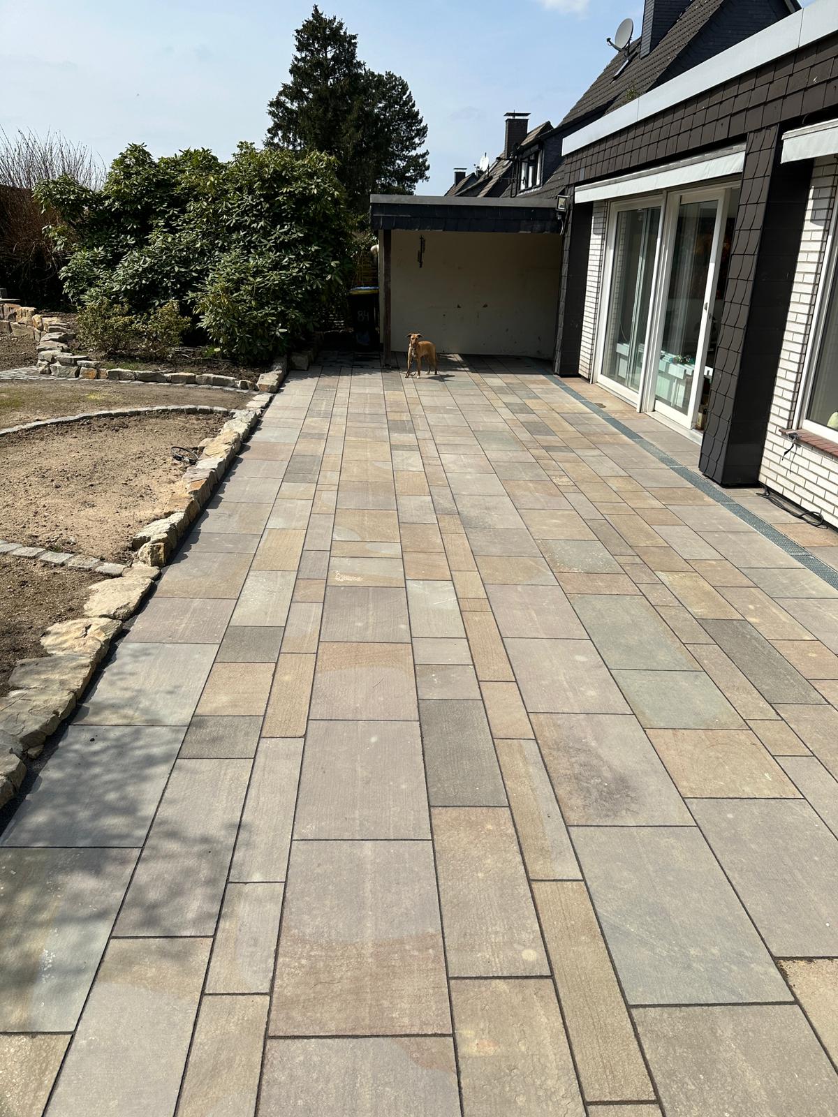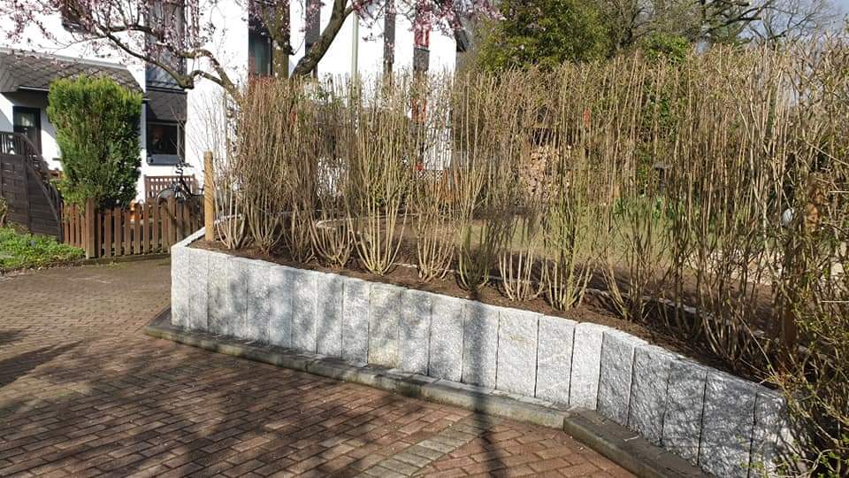 Uneingeschränkte Empfehlung! Eines vorweg: Alle Arbeiten wurden zu unserer vollen Zufriedenheit ausgeführt. Wir sind auf die Fa. Wiesner durch eine Empfehlung einer Arbeitskollegin gekommen, die bereits gute Erfahrung mit der Firma gemacht hatte. Ausgangslage: Wir haben einen kleinen Reihenhausgarten mit einem probleamtischen Nachbarn auf einer Seite, mit dem wir uns beim Schiedsmann auf die Errichtung einer Zaunalage nach unseren Vorstellungen und unsere Kosten geeinigt hatten. Zudem sollte unsere Terasse mit Quarzporphyrplatten mit Natursteinbänderungen werden. Die Terrasse sollte zu beiden Seiten mit Gabionenwänden mit Natursteinfüllung eingegrenzt und die Zaunanlage aus einer Kombination aus Gabionen und Cortenstahl–Motivtafeln gebaut werden. Schließlich war zum Abschluss der Arbeiten noch Rollrasen zu verlegen. Ausführung: Den stets freundlichen Arbeitern der Fa. Wiesner ist es gelungen, trotz der ständigen Beobachtungen des Nachbarn, dessen Einwänden und Kritiken, die Maßnahme reibungslos umzusetzen. Die Arbeiten wurden fachgerecht und sehr schön ausgeführt, die bestehende Bepflanzung wurde so wenig wie irgend möglich beeinträchtigt und die Baustelle abends stets aufgeräumt hinterlassen. Zu Beginn eines jeden Werktages erfolgte die Durchspräche der beabsichtigten Tagesleistung, wobei sämtliche Details Fugenbild, Verlegung besprochen wurden. Im Ergebnis wurden sämtliche Arbeiten so ausgeführt, wie es unseren Vorstellungen entsprach.