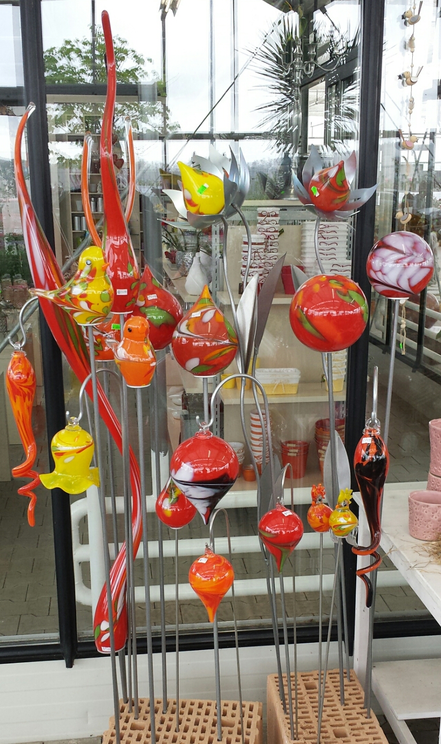 Nette kleine Gärtnerei mit einer großen Auswahl von Stein und Metalldeko für den Garten.